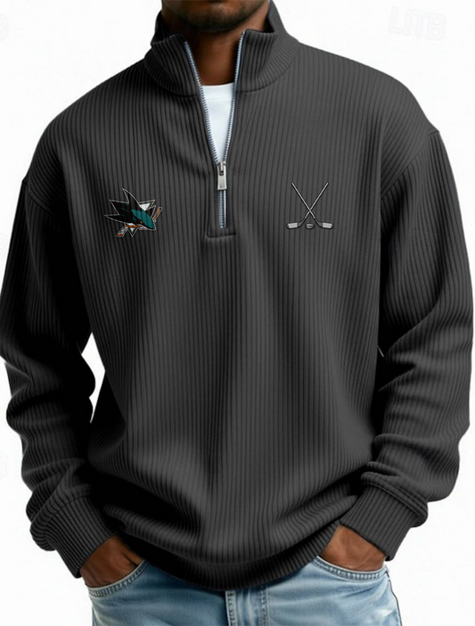 SAN NHL Men's Causal Quarter Zip Long Sleeved Sweatshirt V1 NAK PTTD