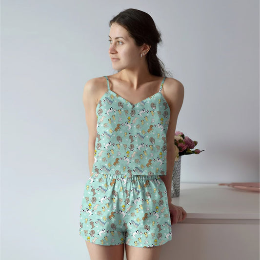 Soccer And Baby Dogs Cami Pajama Set For Women | Pyjamas Short Set | Short PJS Set | Women Tank Top and Shorts Sleepwear Set