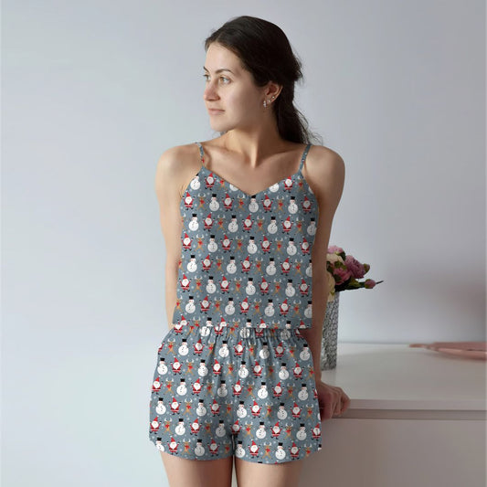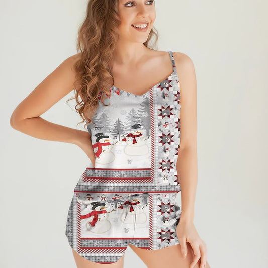 Snowman Christmas Cami Pajama Set For Women | Pyjamas Short Set | Short PJS Set | Women Tank Top and Shorts Sleepwear Set