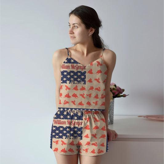 Snowmobile American Flag Cami Pajama Set For Women | Pyjamas Short Set | Short PJS Set | Women Tank Top and Shorts Sleepwear Set