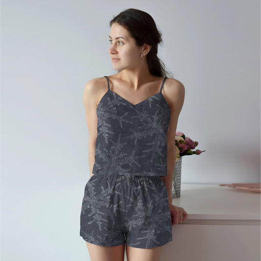 Snowflake Cami Pajama Set For Women | Pyjamas Short Set | Short PJS Set | Women Tank Top and Shorts Sleepwear Set
