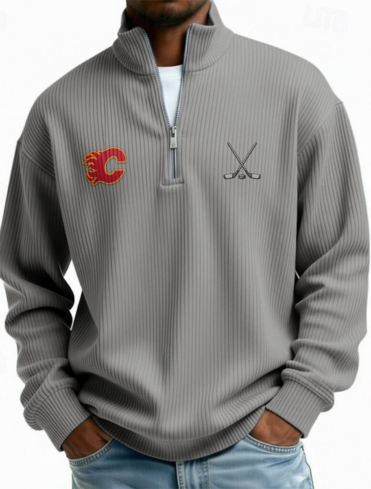CAL NHL Men's Causal Quarter Zip Long Sleeved Sweatshirt V1 NAK PTTD