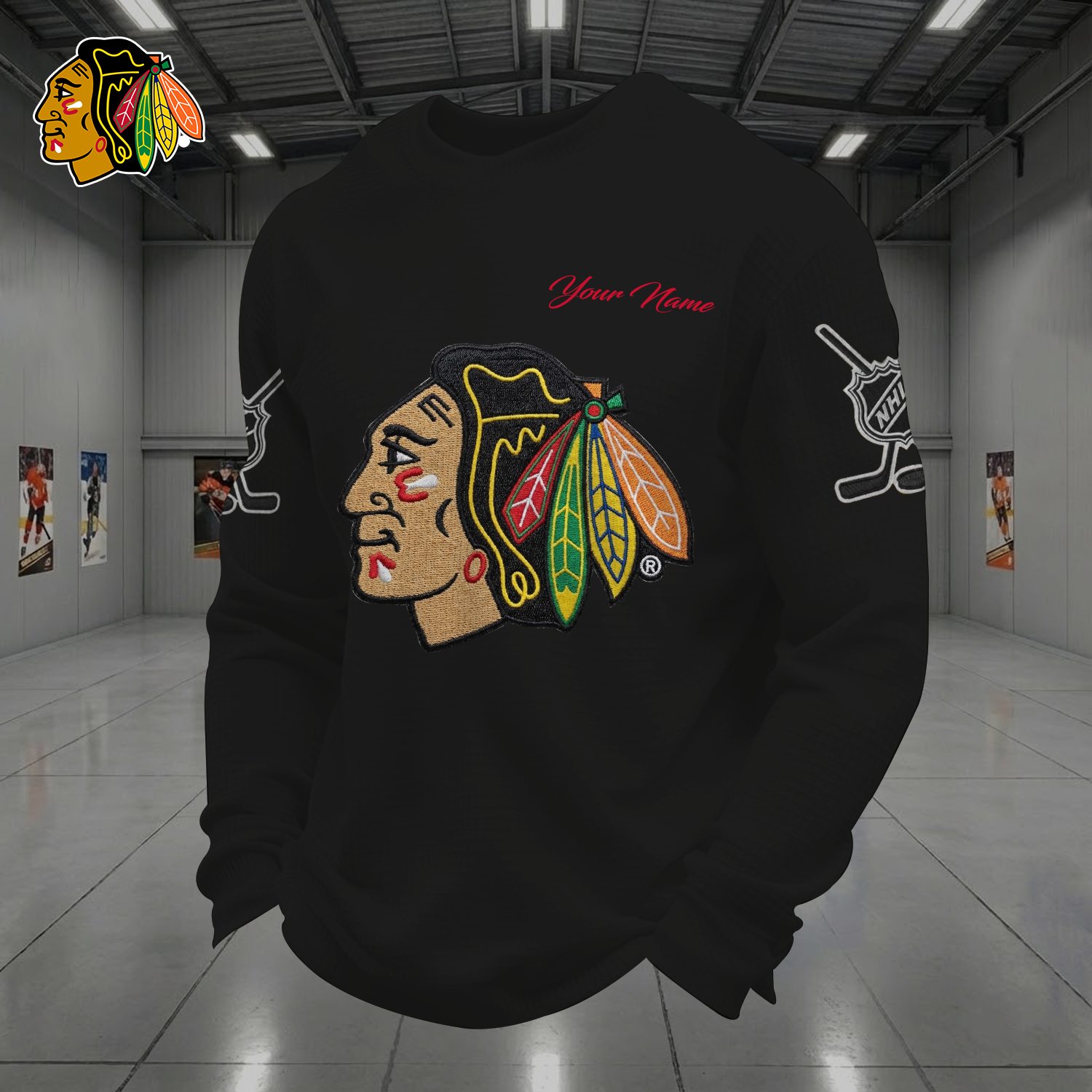 CHI X NHL Men Football Waffle Long Sleeve T-Shirt V1 NAK NHT
