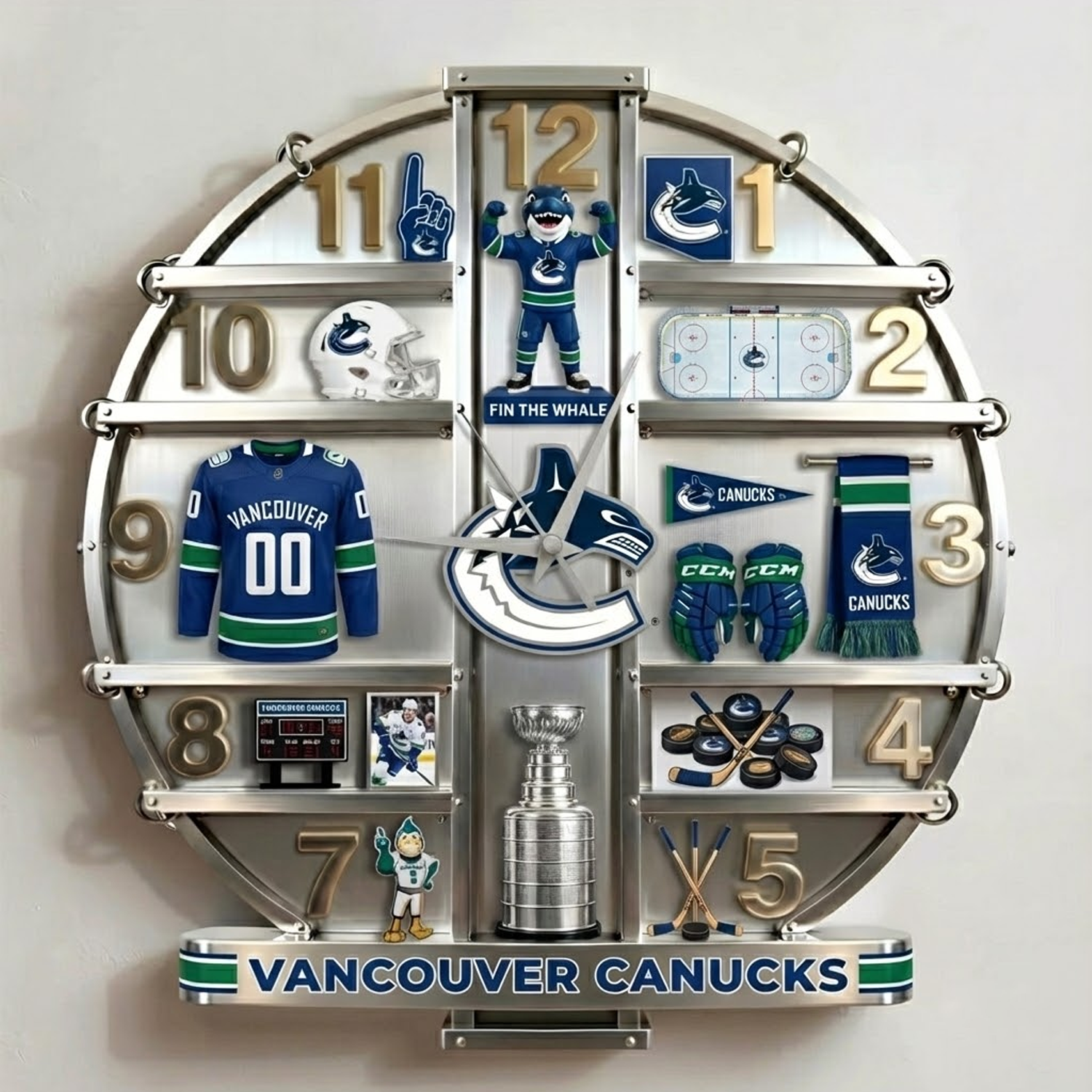 Decorative wall clock designed for sports fans, combining bold style and team spirit. Featuring a 3D visual effect design (flat, single-piece construction), this clock creates depth through printed and sculpted details rather than layered or cast materials.
